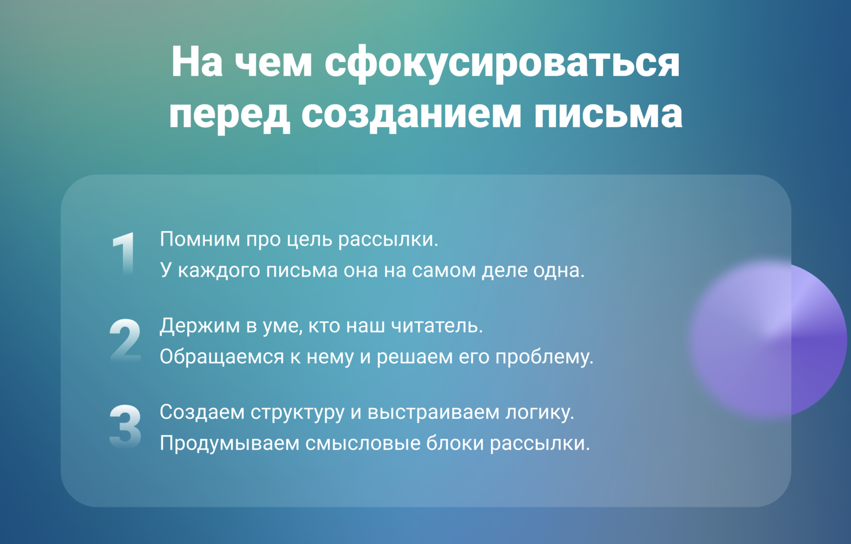 Пробудите своего внутреннего критика, станьте самым непонятливым читателем-скептиком и перепроверьте всё написанное. Понятны ли смыслы, согласованы ли блоки между собой, нет ли ошибок? Дайте прочитать письмо коллегам. Помните, ваш текст — это голос вашей компании, от ее имени вы говорите с читателем.