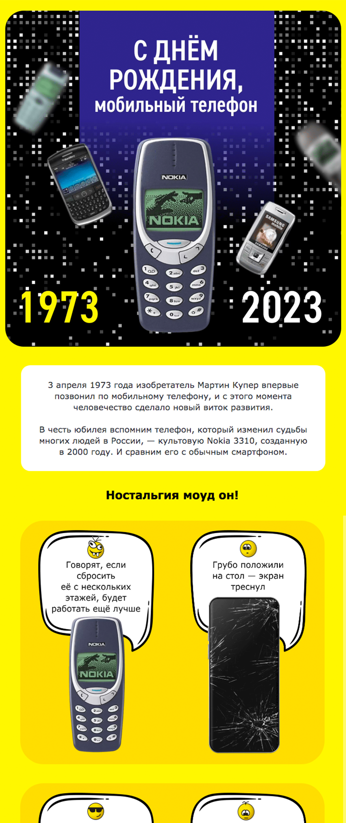 Классный инфоповод и классная реализация идеи! Лайк за дизайн с мемасиками и олдскульными смайликами. Поймали ностальгию и даже всплакнули немного, приятное было время :)