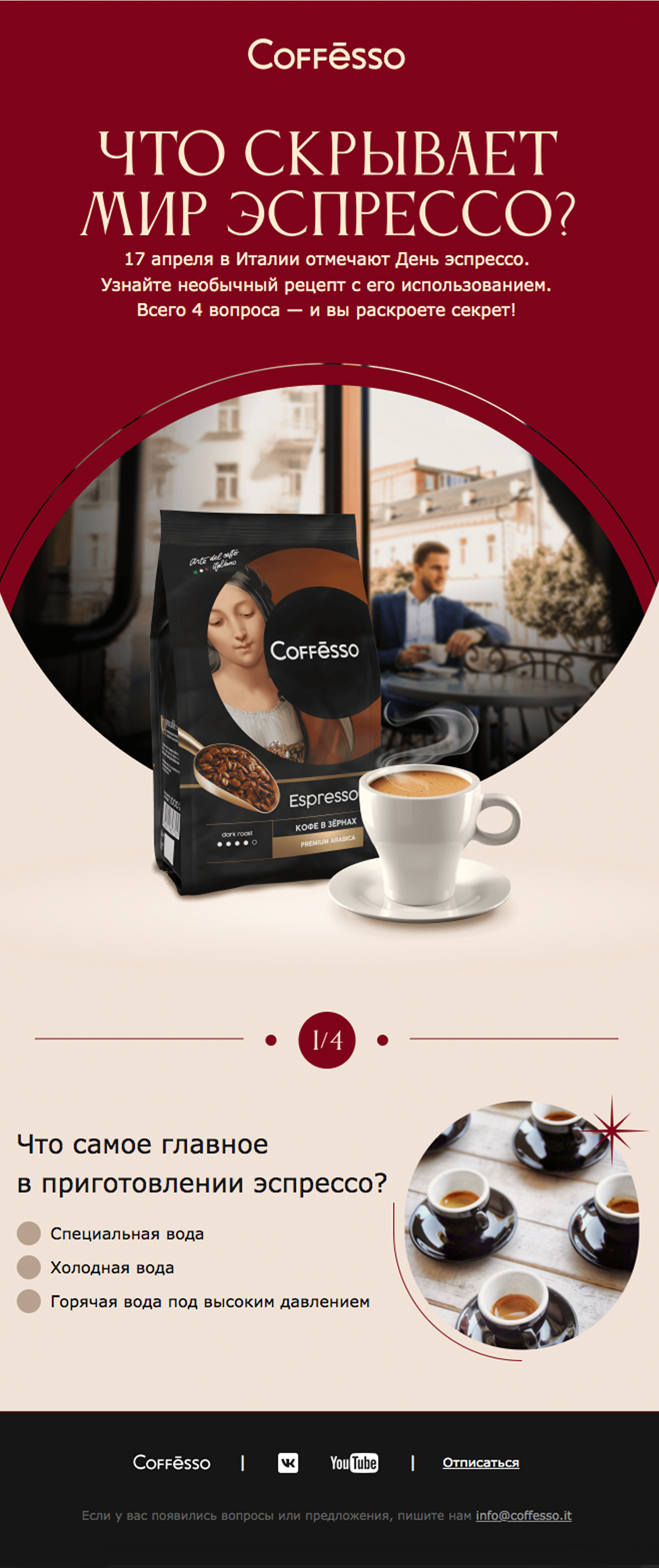 Простая, но эффективная игровая AMP-механика легко вовлекает пользователя и вдохновляет на покупку любимого кофе.