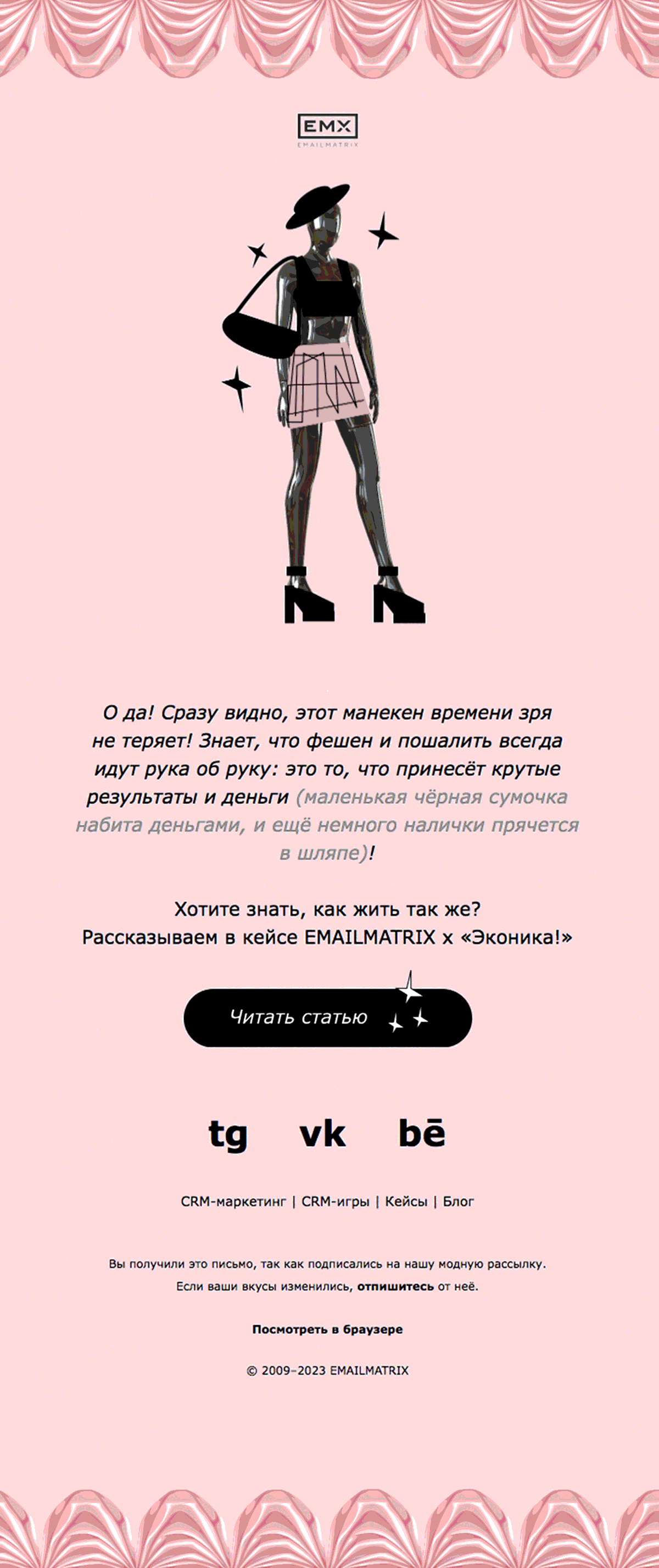 Очень смешное письмо! Креативная, вовлекающая подача. Особенно хорошо зашло фанатам сериала. Но мы вот не смотрели, и всё равно зашло.