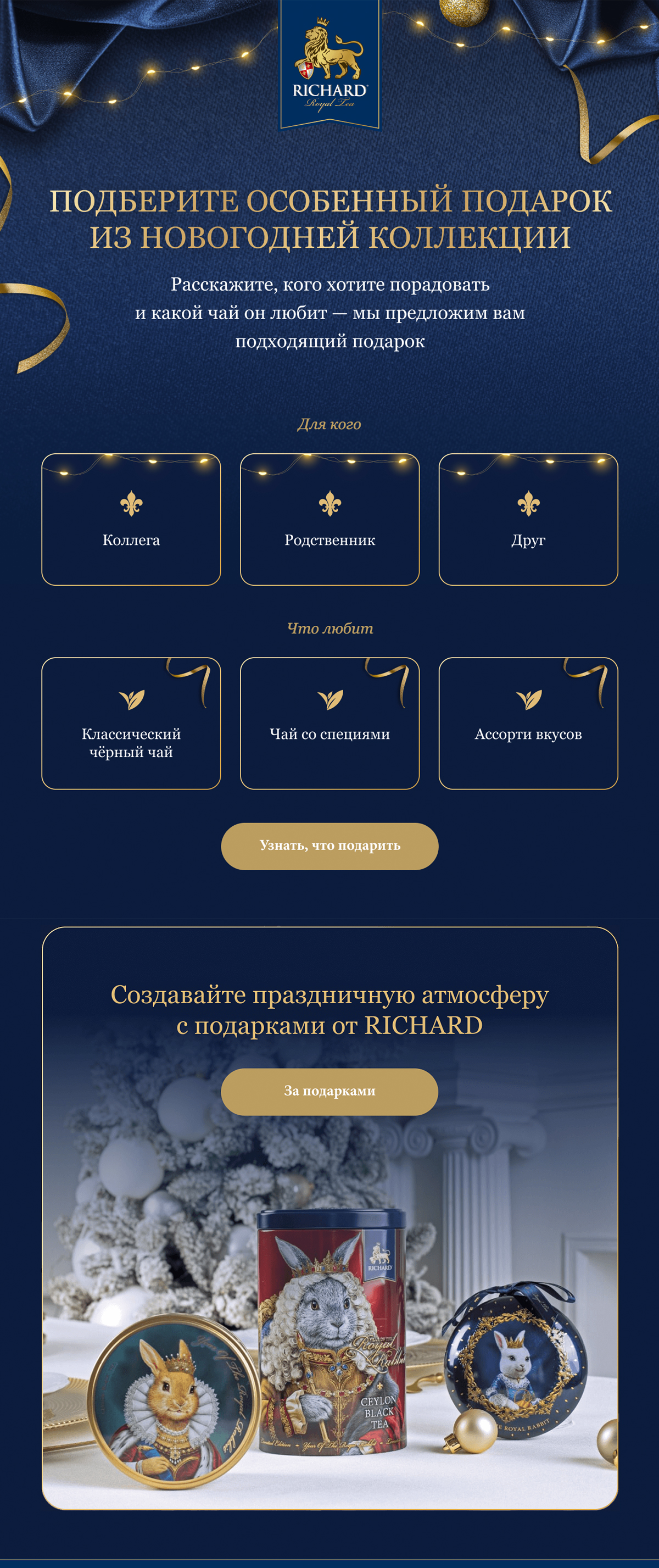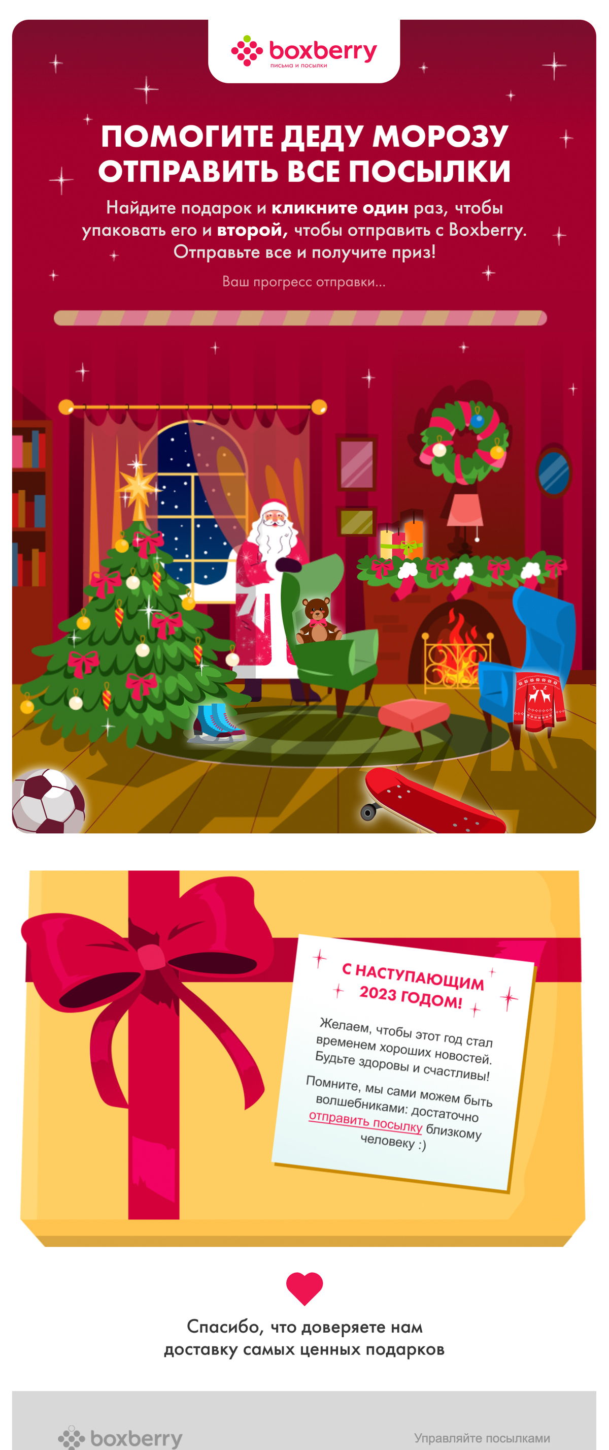 АМР-механика с персональным подбором подарка к празднику. Подарок придумали за меня, очень удобно.
