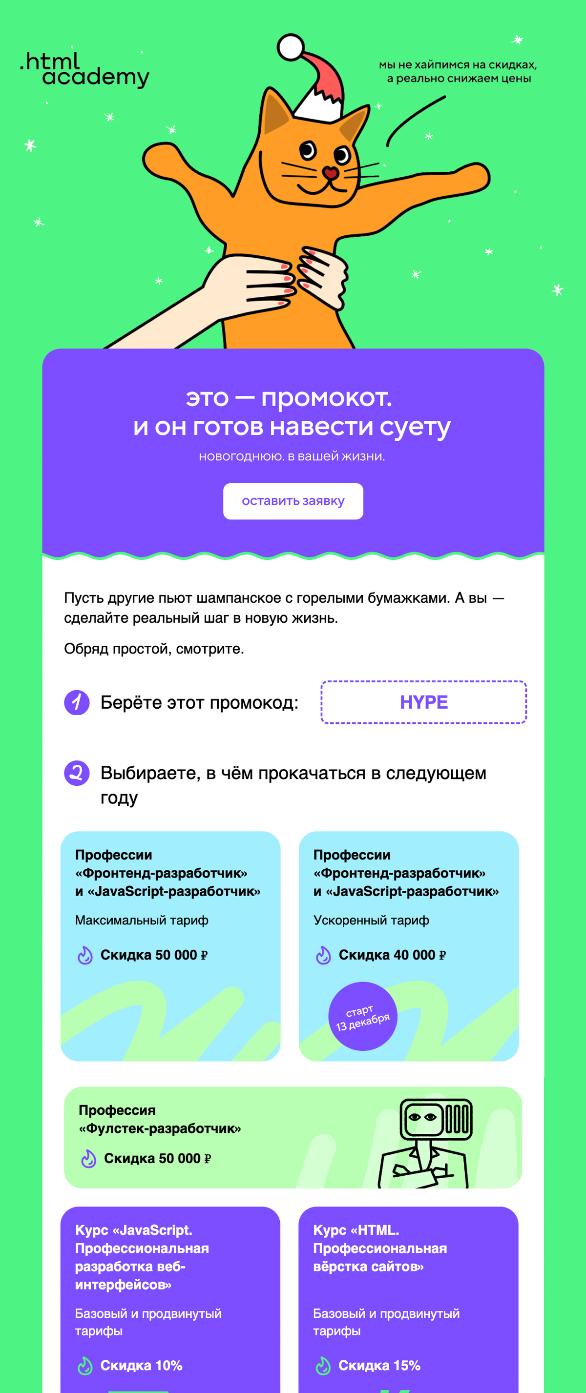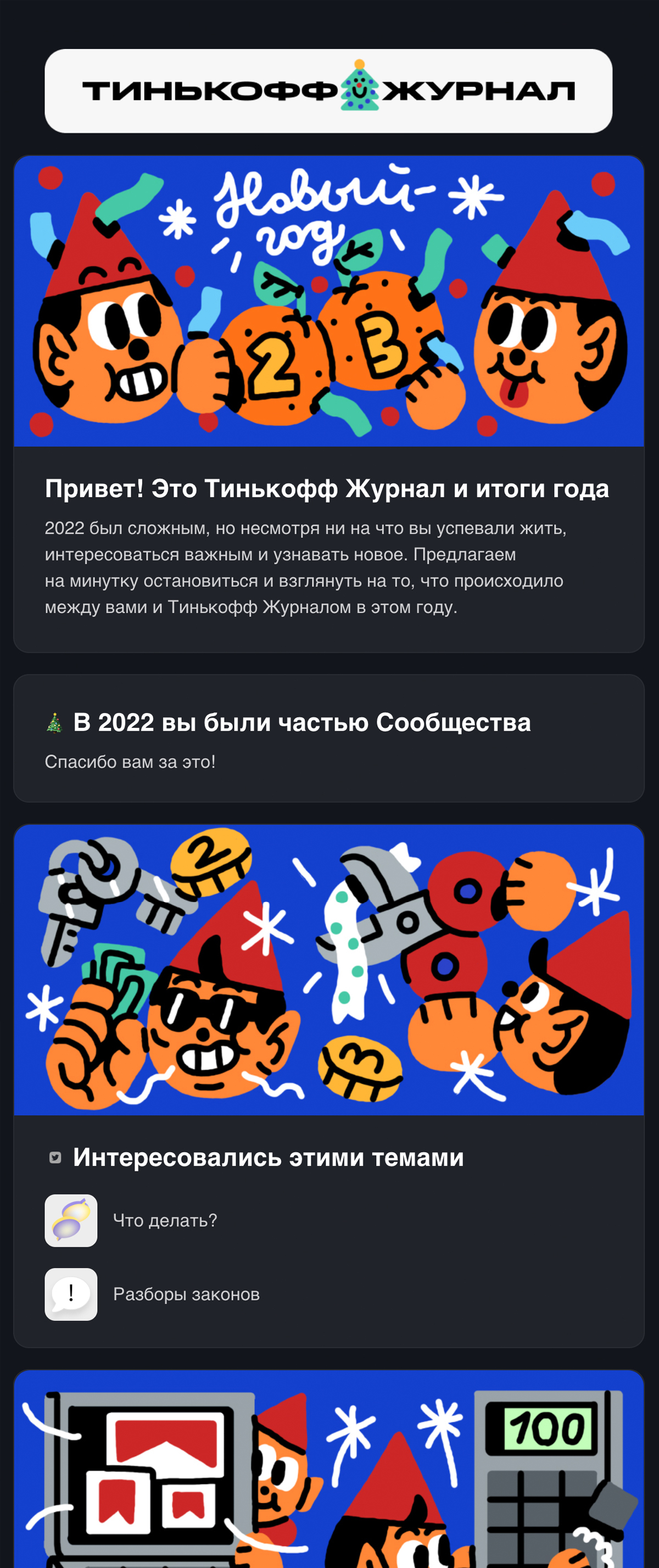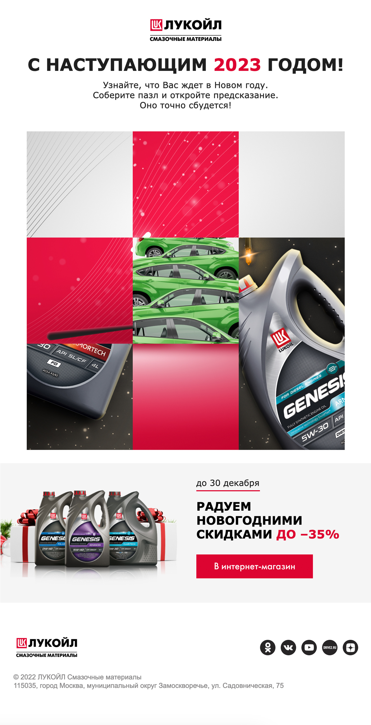 Несложная, но вовлекающая механика АМП-письма в классном дизайне. Для большего эффекта предлагаем показывать результат сразу на главном баннере.