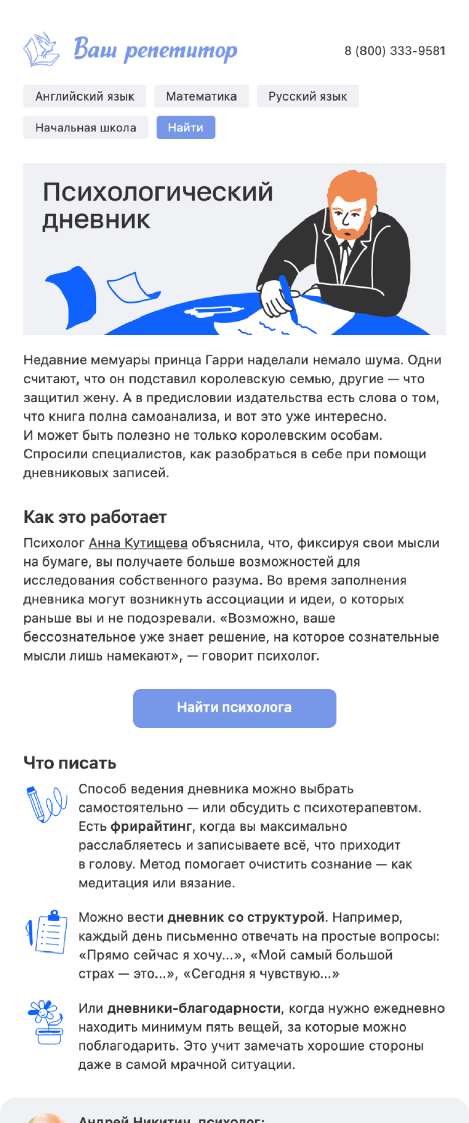 Хороший пример нативной интеграции. Напишите полезный гайд, дополните цитатами ваших профи. Теперь ссылка на заказ консультации у специалиста — логичное продолжение, а не навязчивая реклама.