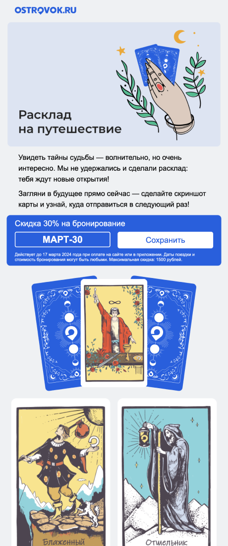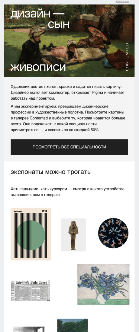 Предлагают погадать на дизайнерскую судьбу с помощью произведений искусства. Классная формулировка для объяснения пользователю правил взаимодействия с письмом на всех устройствах.
