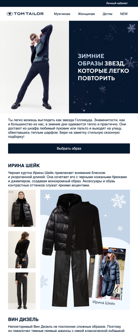 Описания образов в подборке очень стильные! В рассылке подчеркнули модные лайфхаки звезд и добавили эмоций, которые помогают сопоставить себя с героем и выбрать лук на эту зиму.