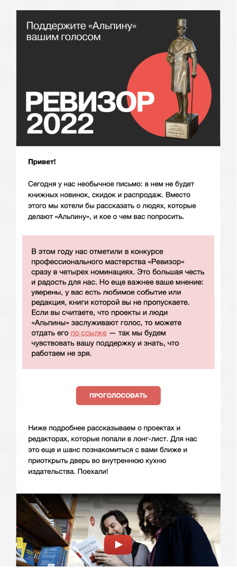 Хорошая идея — подружить читателя с брендом. Искреннее, понятное письмо с просьбой поддержки.