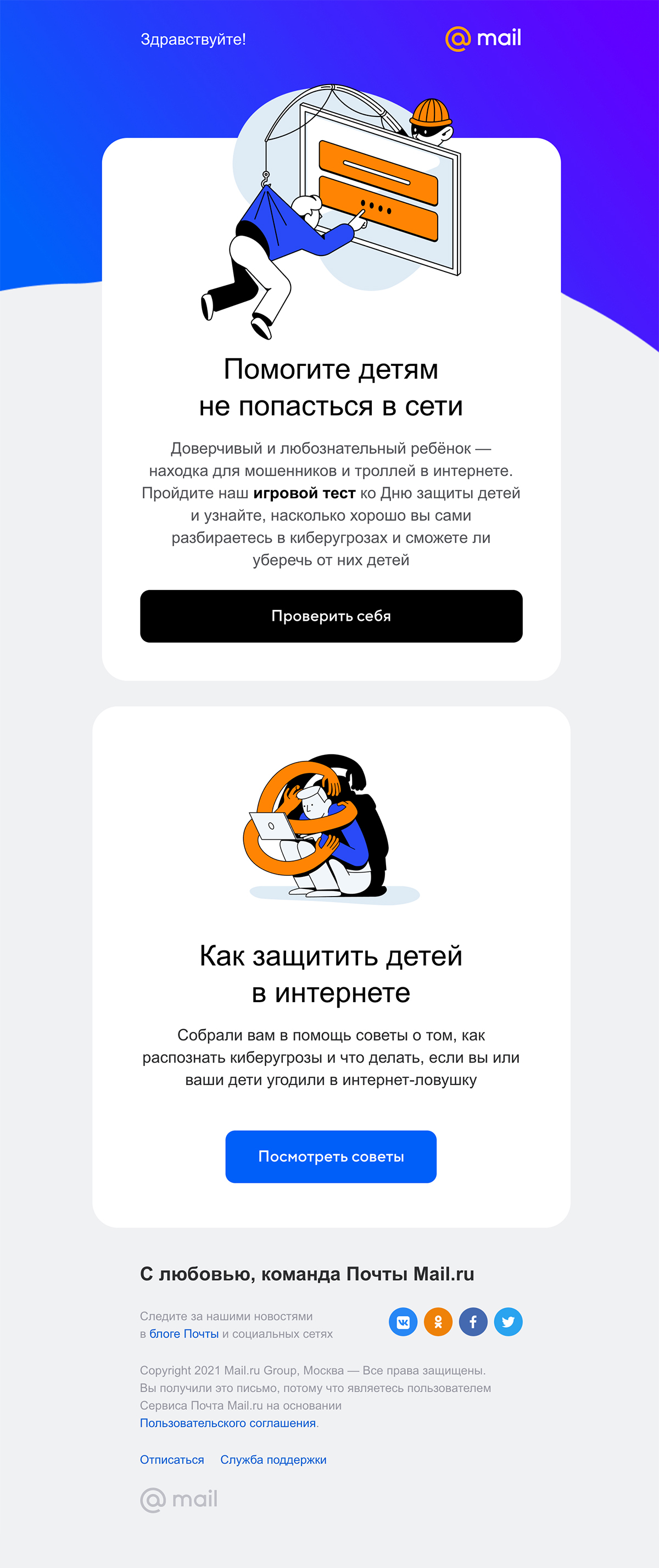 Полезное письмо ко Дню защиты детей. Проверьте себя и узнайте, как обезопасить детей от киберугроз и интернет-ловушек.