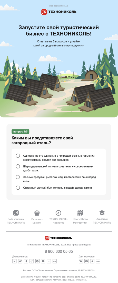 AMP-письмо с простым и понятным тестом поможет вербализировать мечту о туристическом бизнесе и подобрать подходящий под нее проект быстровозводимого дома. От мечты — к цели!