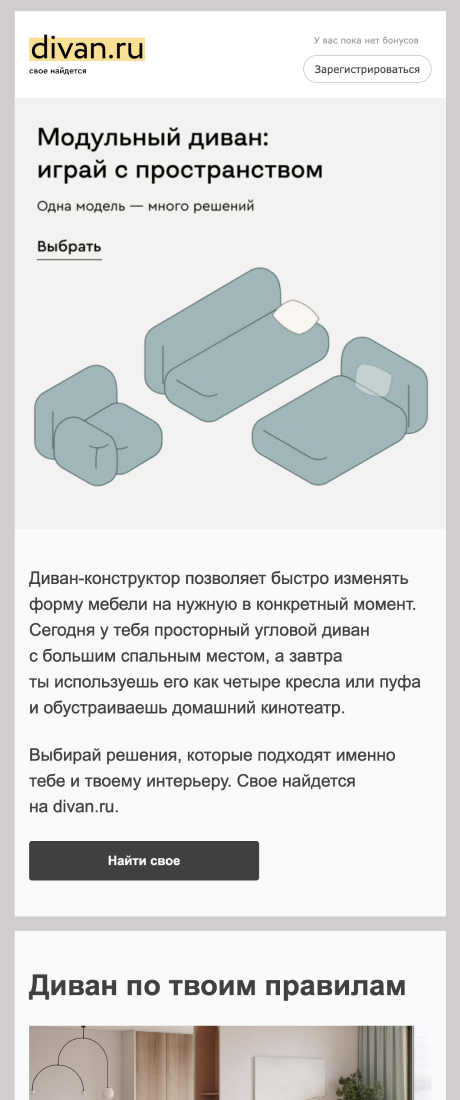 Если вы не наигрались в лего в детстве, но уже выросли, есть отличная возможность наверстать упущенное — с модульными диванами. Письмо хорошо структурировано, показали разные конфигурации и цвета нескольких моделей диванов.