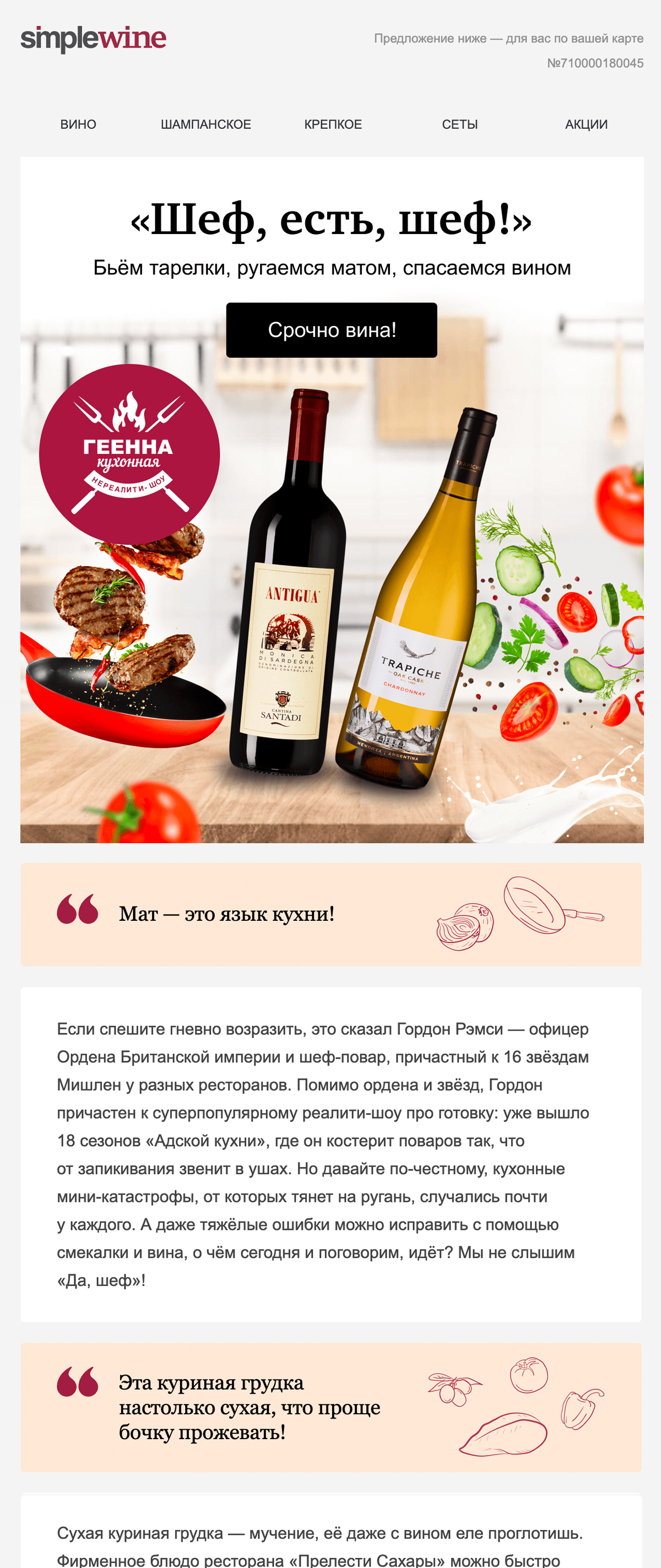 Забавное тематическое письмо, ориентированное на продажи. Жюри советуют сделать текст более читабельным и акцентировать CTA.