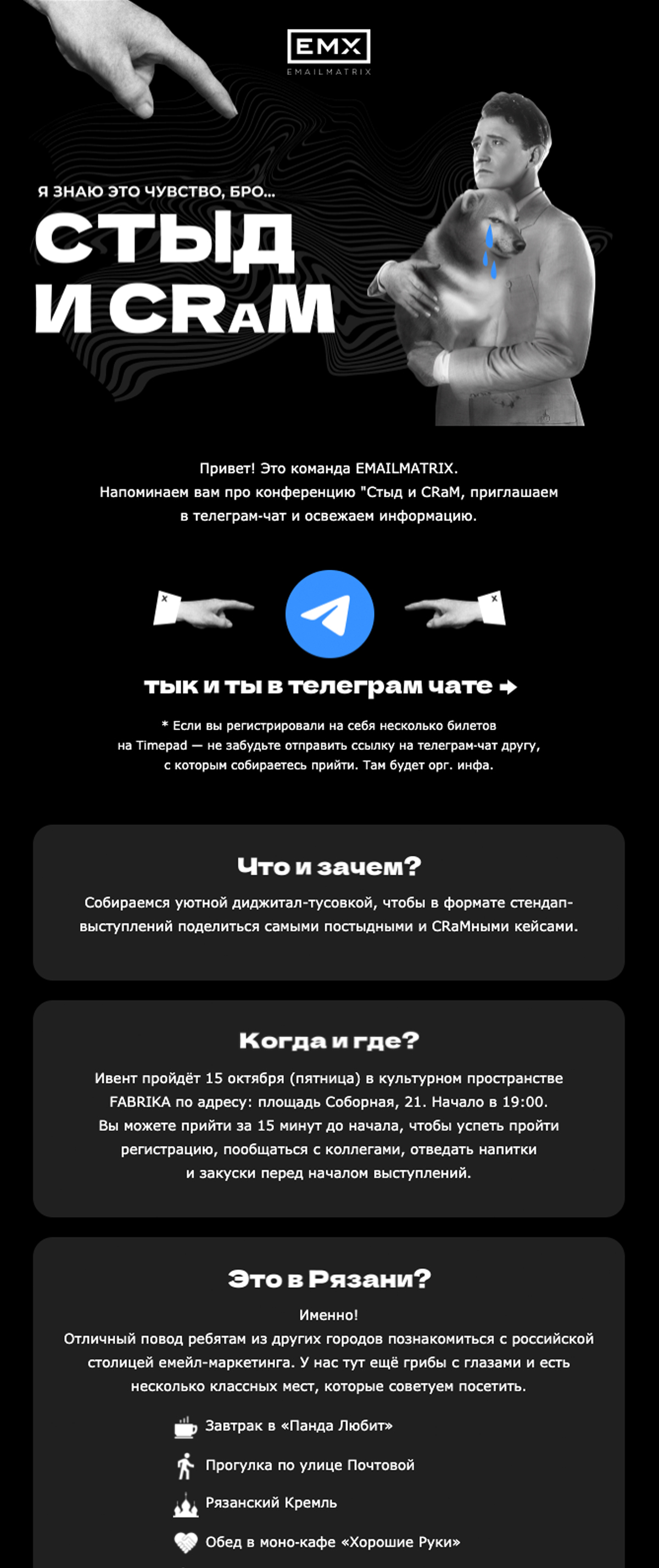 Простое, но при этом интересное, забавное и даже немного душевное письмо. Мы б приехали, но опять всё пропустили!