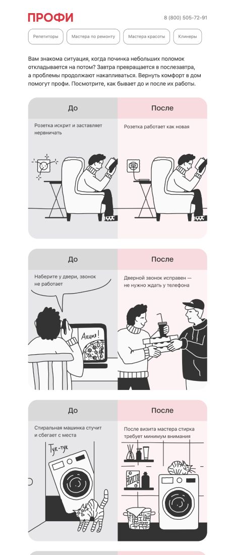 Очень жизненные истории, лаконичный дизайн и наглядные иллюстрации помогают подписчику наконец-то принять решение и перестать откладывать на потом то, что можно починить прямо сейчас.