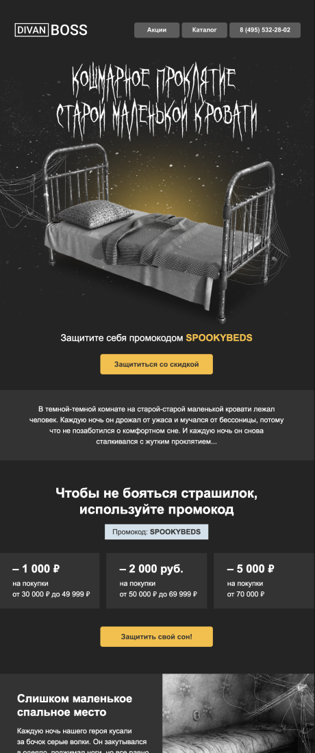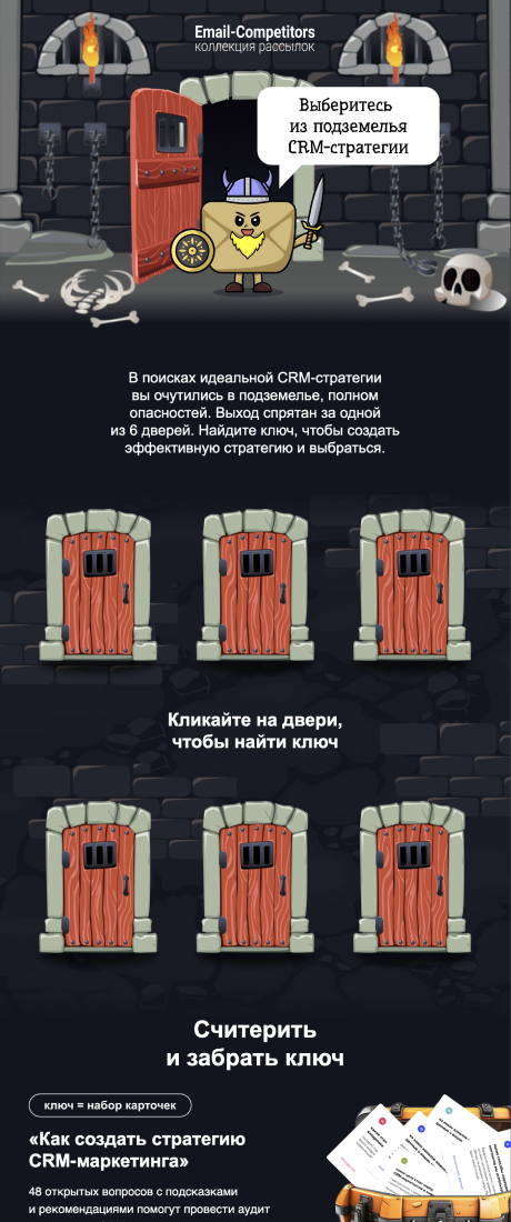 В этом AMP-письме предлагают взглянуть в лицо страхам и сразиться с монстрами дедлайнов и нереализуемых KPI. Игра получилось веселой и помогла промотировать новый продукт.