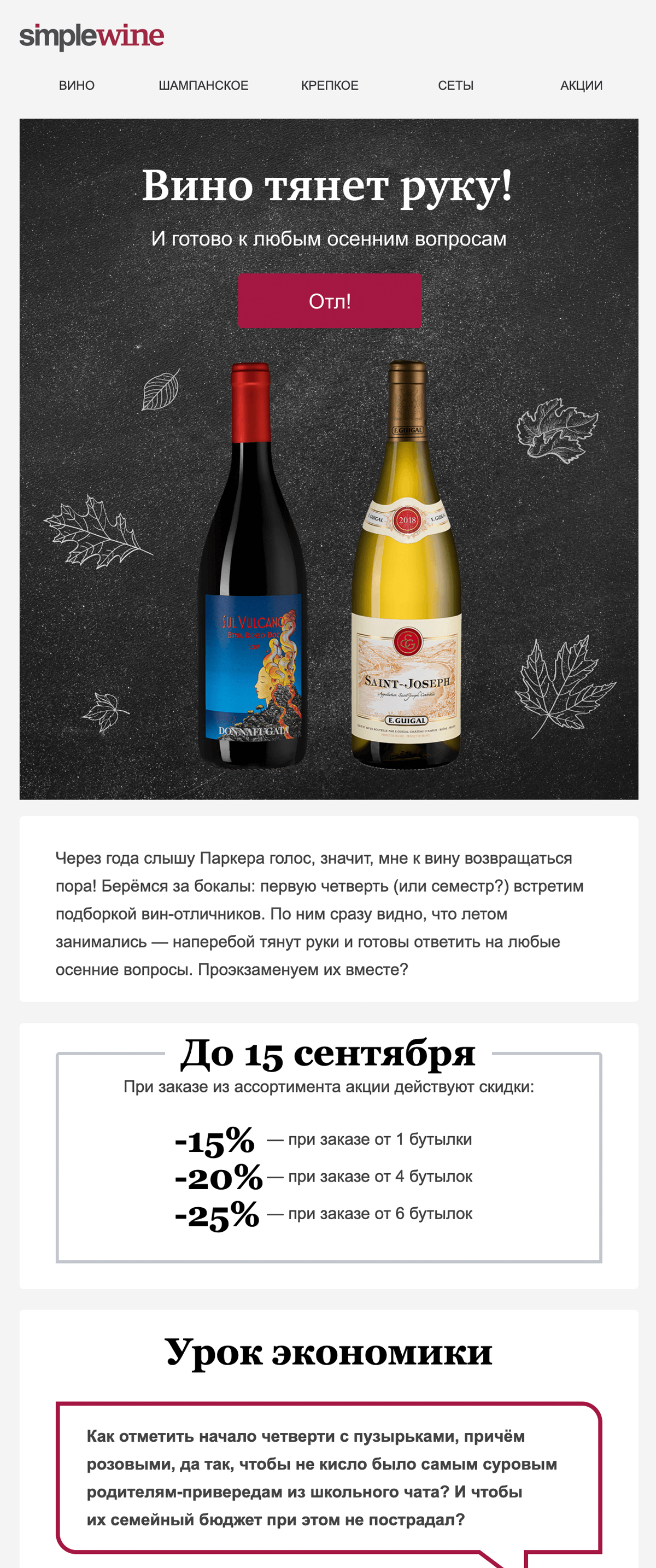 Вино и наука прекрасно сочетаются. Рассылка SimpleWine наглядно показывает, как удержать внимание подписчика. Садись, SimpleWine, зачет!