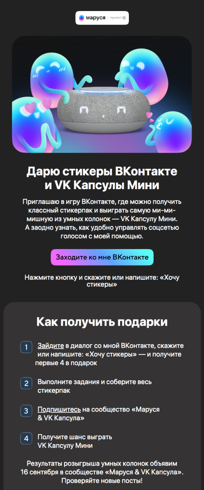 Подробное и логичное письмо-инструкция в стильном смелом дизайне. Адаптировать под мобильную версию — и полный шик!
