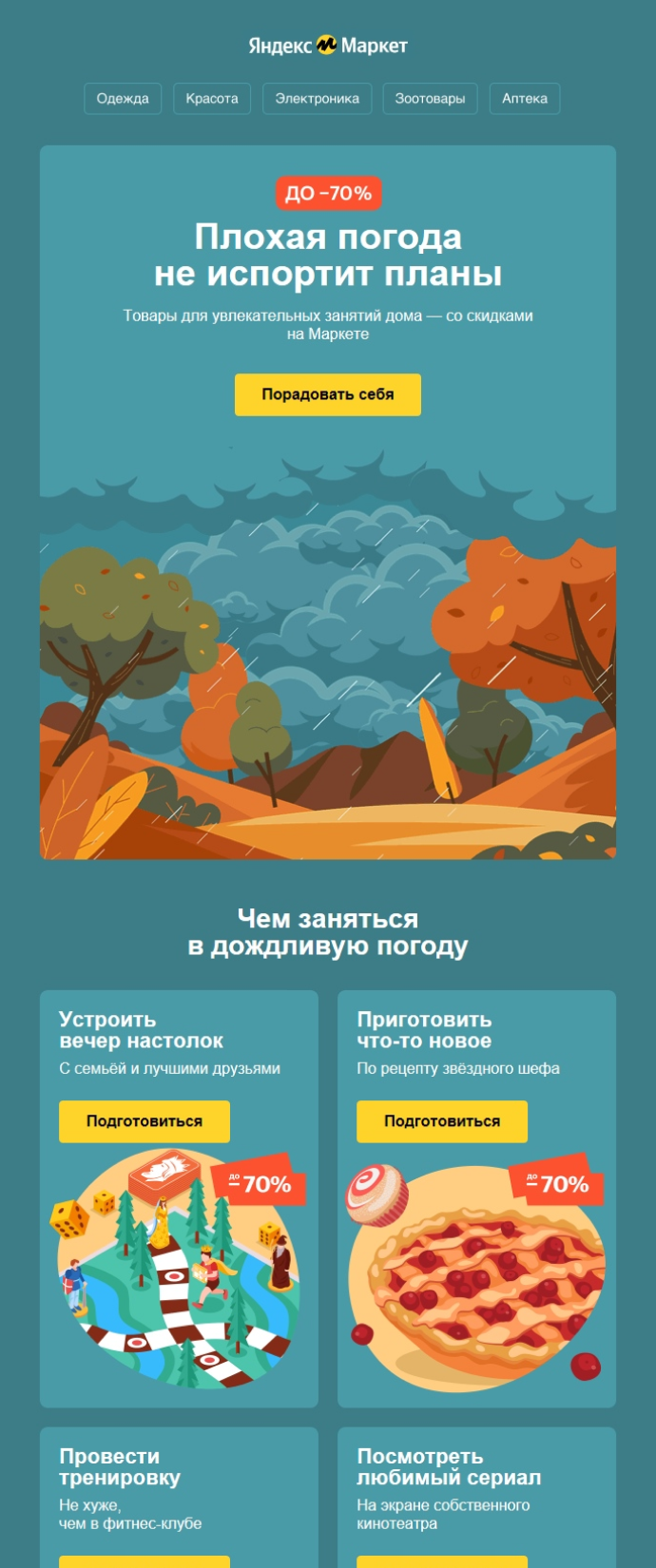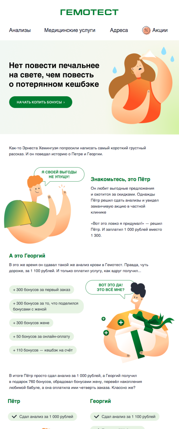 Важная для клиента информация подается в легкой и оригинальной манере. Письмо интересно читать, а иллюстрации — рассматривать.